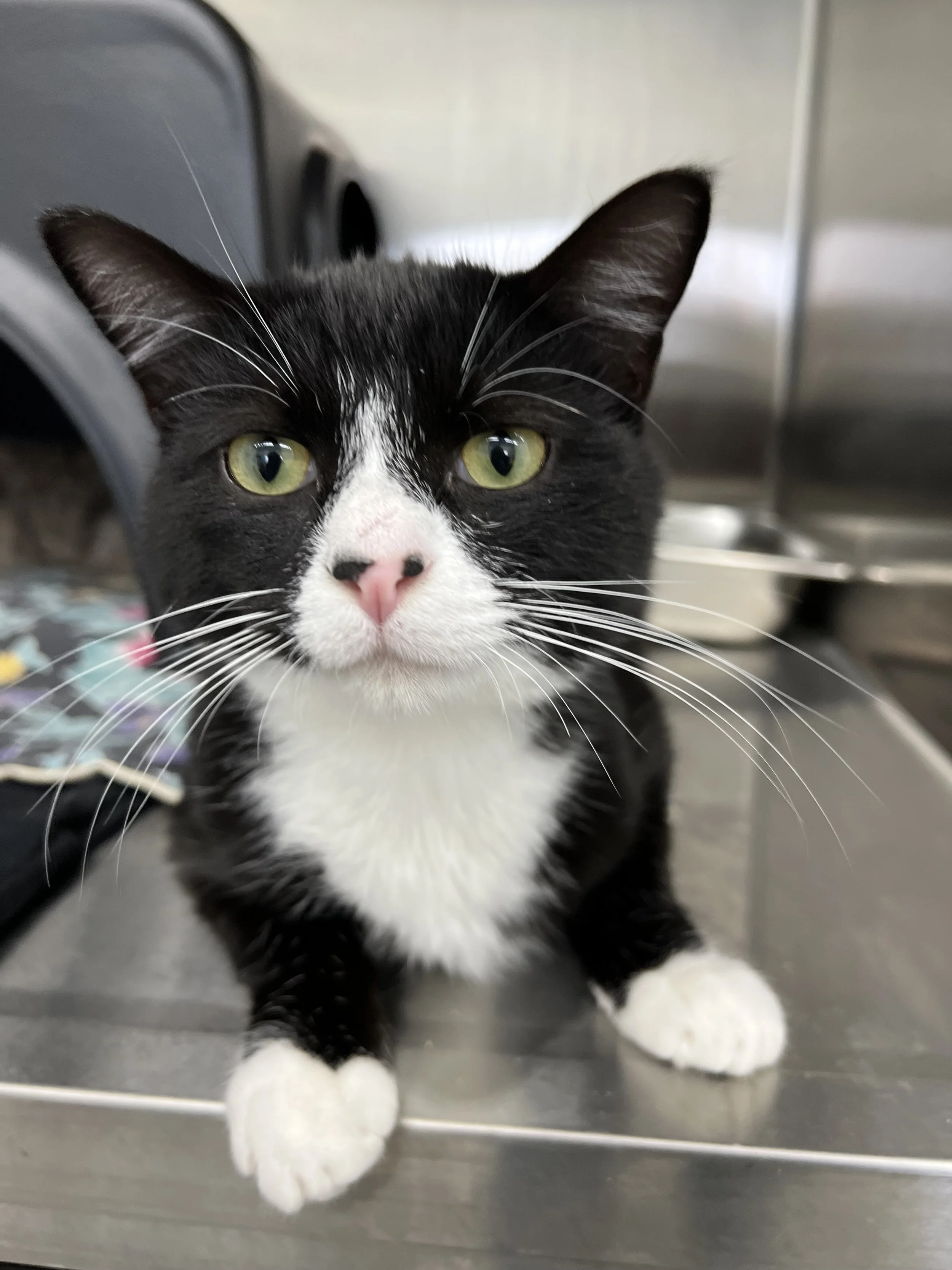 Tank got his name because he is a very sturdy-built cat! He is friendly and loves to play. He is approximately 9 months old.