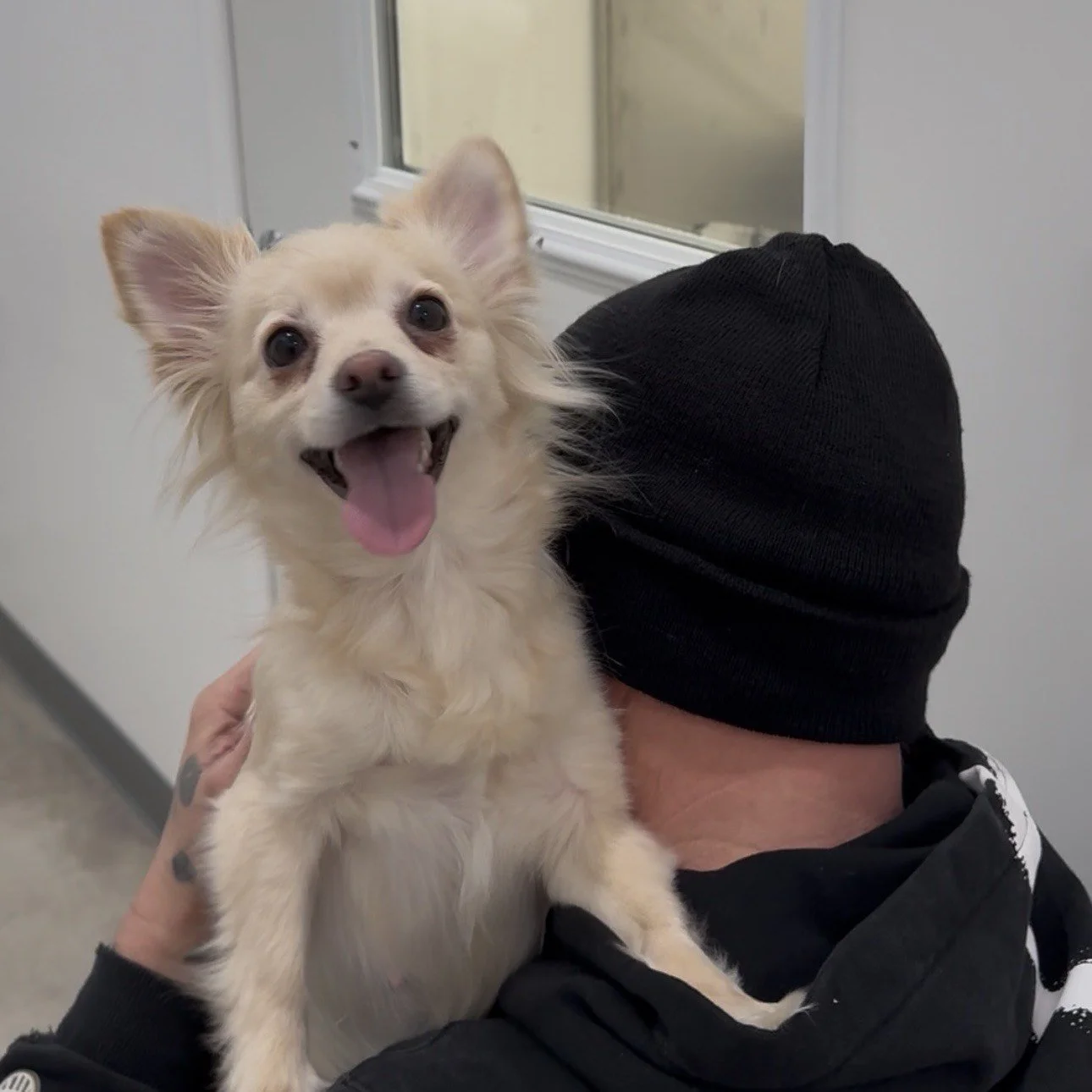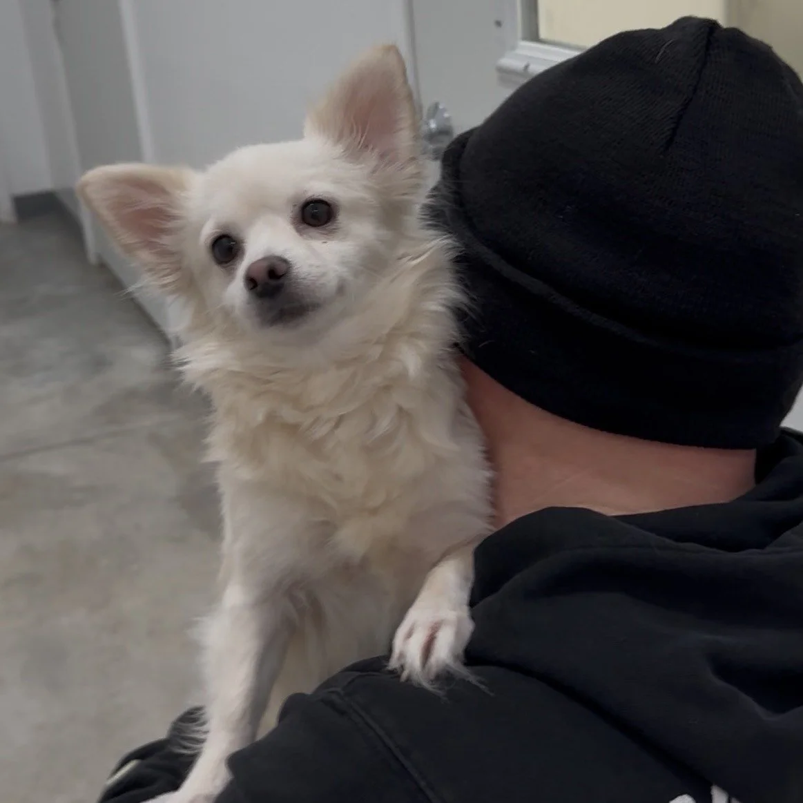 Wesson is spunky and on high alert! This little guy likes the to take in all that is happening in his surroundings. He packs a big brave punch for his small puppy-sized package.